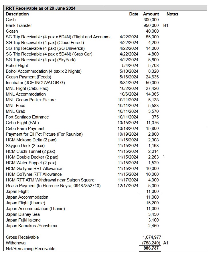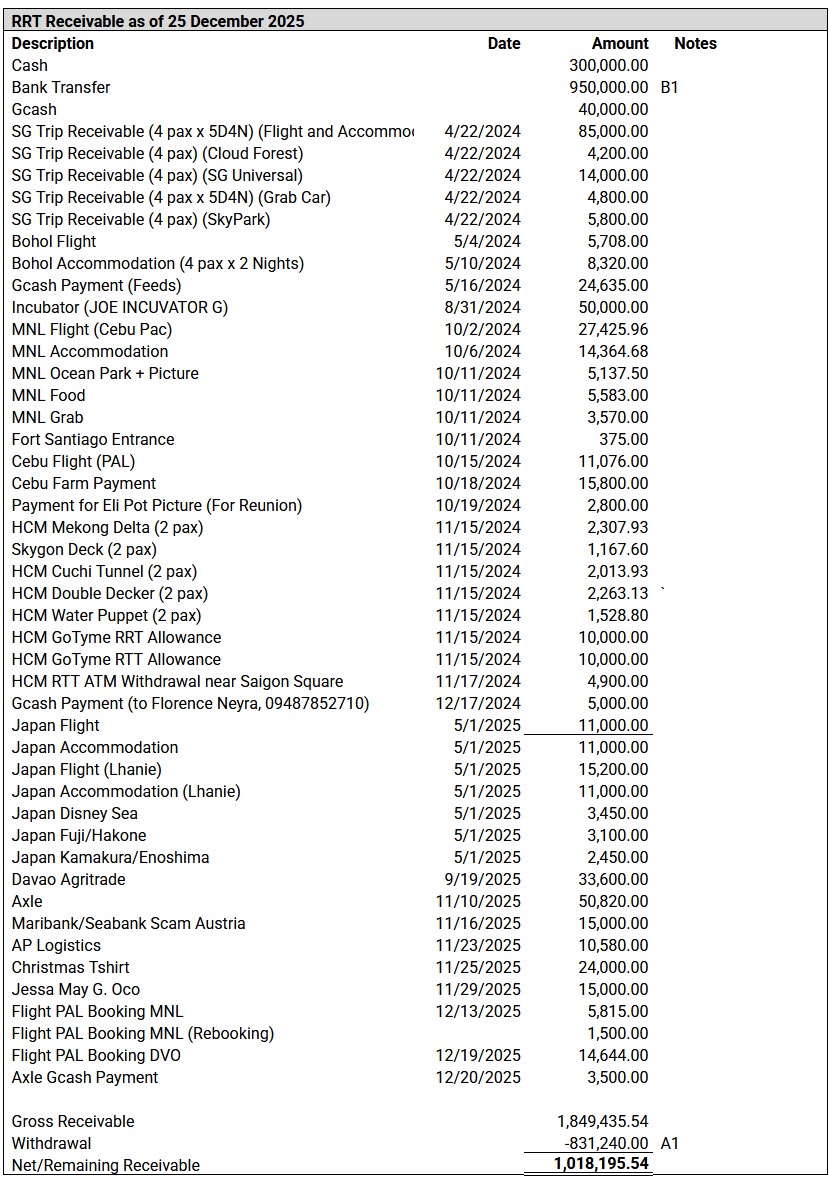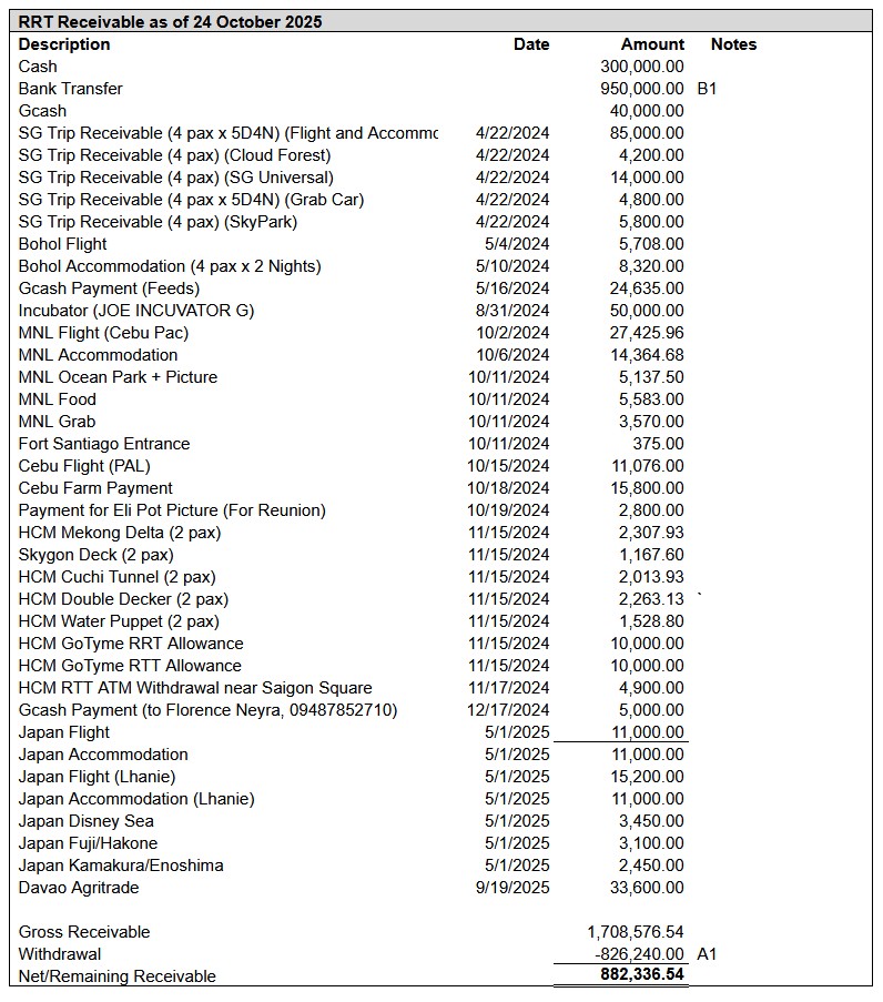 Receivable as of October 24, 2025